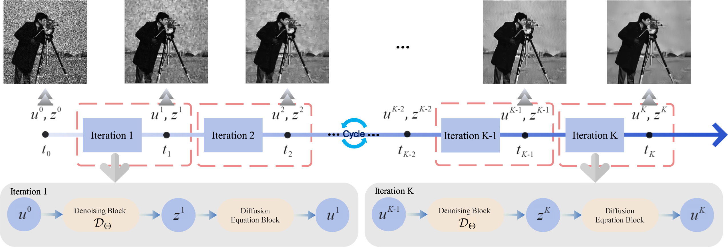 | The removal of multiplicative Gamma noise is a critical research area in the application of synthetic aperture radar (SAR) imaging, where neural networks serve as a potent tool. However, real-world data often diverges from theoretical models, exhibiting various disturbances, which makes the neural network less effective. Adversarial attacks can be used as a criterion for judging the adaptability of neural networks to real data, since they can find the most extreme perturbations that make neural networks ineffective. In this work, we propose a tunable, regularized neural network framework that unrolls a shallow neural denoising block and a diffusion regularization block into a single network for end-to-end training. The linear heat equation, known for its inherent smoothness and low-pass filtering properties, is adopted as the diffusion regularization block. The smoothness of our outputs is controlled by a single time step hyperparameter that can be adjusted dynamically. The stability and convergence of our model are theoretically proven. Experimental results demonstrate that the proposed model effectively eliminates high-frequency oscillations induced by adversarial attacks. Finally, the proposed model is benchmarked against several state-of-the-art denoising methods on simulated images, adversarial samples, and real SAR images, achieving superior performance in both quantitative and visual evaluations. Yi Ran et al. | ![]() |