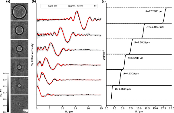 Single bubble sonoluminescence (SBSL) is the phenomenon of synchronous light emission due to the violent collapse of a single spherical bubble in a liquid, driven by an ultrasonic field. During the bubble collapse, matter inside the bubble reaches extreme conditions of several gigapascals and temperatures on the order of 10000 K, leading to picosecond flashes of visible light. To this day, details regarding the energy focusing mechanism rely on simulations due to the fast dynamics of the bubble collapse and spatial scales below the optical resolution limit. In this work we present phase-contrast holographic imaging with single x-ray free-electron laser (XFEL) pulses of a SBSL cavitation bubble in water. X-rays probe the electron density structure and by that provide a uniquely new view on the bubble interior and its collapse dynamics. The involved fast time-scales are accessed by sub-100 fs XFEL pulses and a custom synchronization scheme for the bubble oscillator. We find that during the whole oscillation cycle the bubble’s density profile can be well described by a simple step-like structure, with the radius Hannes P Hoeppe et al. | ![]() |