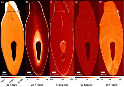 Leprosy, a chronic infectious disease, leads to blood mineral imbalances: low levels of zinc, calcium, magnesium, and iron and high levels of copper. Interestingly, in late medieval Europe, minerals were used to treat leprosy. We investigated physiological responses to leprosy and possible evidence of treatment in dental tissues of leprosy sufferers from medieval Denmark and early 20th century Romania when multidrug therapy was not then yet invented. Using Synchrotron Fluorescence (SXRF) and laser ablation (LA-ICP-TOFMS), we show marked covariations in the zinc, calcium, and magnesium distributions, which are compatible with clinical studies but cannot be directly attributed to leprosy. Minerals used historically as a treatment for leprosy show no detectable intake (arsenic, mercury) or a diffuse distribution (lead) related to the daily consumption of contaminated water and food. Intense lead enrichments indicate acute incorporations, potentially through the administration of lead-enriched medication or the mobilization of lead from bone stores to the bloodstream during intense physiological stress related to leprosy. However, comparisons with a healthy control group are needed to ascertain these interpretations. The positive correlations and the patterns observed between lead and essential elements may indicate underlying pathophysiological conditions, demonstrating the potential of the two techniques for investigating diseases in past populations. Brozou A, Mannino MA, Van Malderen SJM, Garrevoet J, Pubert E, Fuller BT, Dean MC, Colard T, Santos F, Lynnerup N, Boldsen JL, Jørkov ML, Soficaru AD, Vincze L, Cabec AL. | ![]() |