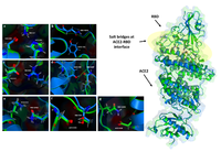 SARS-CoV-2 is a global challenge due to its ability to spread much faster than SARS-CoV, which was attributed to the mutations in the receptor binding domain (RBD). These mutations enhanced the electrostatic interactions. Recently, a new strain was reported in the UK that includes a mutation (N501Y) in the RBD, that possibly increases the infection rate. Using Molecular Dynamics simulations (MD) and Monte Carlo (MC) sampling, we showed that the N501 mutation enhances the electrostatic interactions due to the formation of a strong hydrogen bond between SARS-CoV-2-T500 and ACE2-D355 near the mutation site. In addition, we observed that the electrostatic interactions between the SARS-CoV-2 and ACE2 in the wild type and the mutant are dominated by salt-bridges formed between SARS-CoV-2-K417 and ACE2-D30, SARS-CoV-2-K458, ACE2-E23, and SARS-CoV-2-R403 and ACE2-E37. These interactions contributed more than 40 % of the total binding energies. https://arxiv.org/abs/2101.01791 Fedaa Ali, Amal Kasry, Muhamed Amin | ![]() |