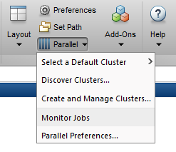Alternatively, to retrieve job results via a graphical user interface, use the Job Monitor (Parallel > Monitor Jobs).